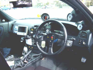 コクピット内には 追加メーターがいっぱいでした。 僕はメカニカルな事が良く分からないので、 何が何なのかサッパリでした (^^;)。 |