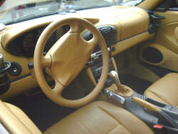 この高級感。 コクピットは、タンレザーを使った贅沢な空間。 リアシートはやっぱり緊急用です (^^;)。 |