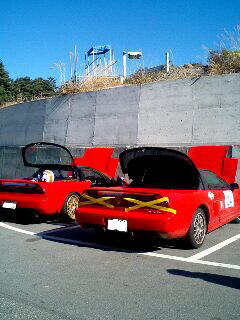 そして走行終了。 クールダウンするヒソカ号とかしま号。 |