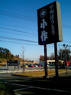 そして甲州名物のほうとう屋さんでお昼ご飯。 これで気分は武田武士?? ヒソカさんが食べてた キムチほうとうはホントに辛そうだった(^^;)。 |