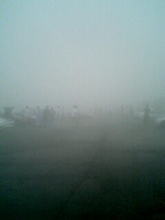 朝、こんな感じ。 霧雨で駐車場の向こう側は見えません。 カプチーノ&AZ1の大群がいたんですが、 ご覧の通りまったく見えません・・・。 |