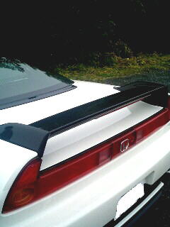 対してこちらは02R「風」ウィング(ルー○KS製)。 一見同じなんですが、良く見ると 表面がやや荒かったりウィング断面が厚かったり・・・。 純正品と社外品との精度の違いを痛感。 でも、お値段を考えたら現実的にはこっちでしょ。 ハイマウントストップランプがちゃんと付く辺りも良いですよね。 |