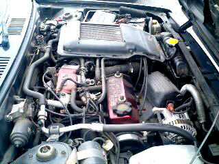 エンジンルーム内は それぞれのパーツでギッチリ。 昔はこんなクルマもあったんですねえ。 |