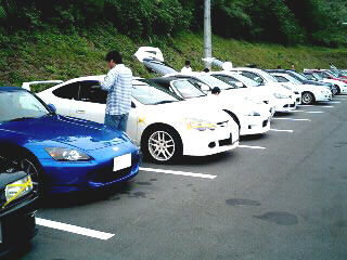 さすがディーラー主催の走行会、 ほとんどがHONDA車だぜ! 新旧S2000、インテRなど HONDAスポーツが勢揃い。 |