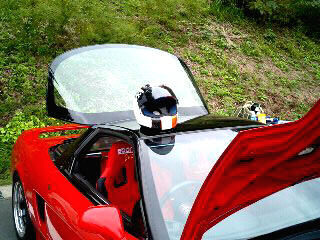 なんと若葉マークを発見! これはサーキット初心者の意味か? それともマジで運転初心者?? まあ、初心者大歓迎の走行会らしい ワンショットですな(^^)。 |