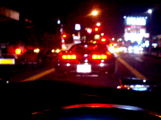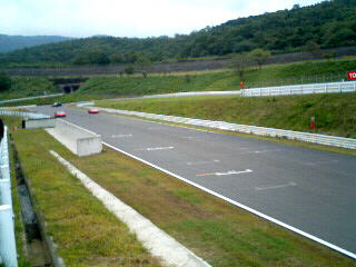 無謀にも立ち上がり加速で ヒソカ号に勝負を挑む組長(^^;)。 このあとの1コーナーで 二人揃ってオーバースピード、 見事にとッ散らかってました(爆)。 |
