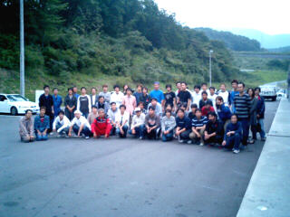 参加者みんなで集合写真です。 コースアウト、エンジントラブルなど あれども怪我人は一人もなし。 良かった良かった。 |