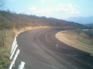 そのバンク上から見た 決戦の場、ショートコース。 実際走った印象以上に アップダウンありました。 |