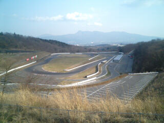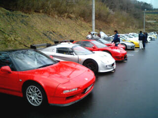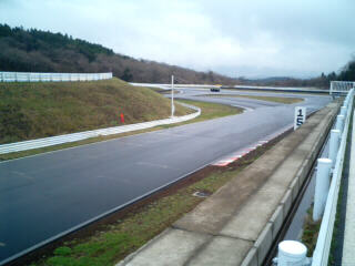 決戦の場、到着。 路面は前日の雨が残るセミウェット、 気温も低いし路面も冷たそう。 ハッキリ言ってヤバイです(^^;)。 |