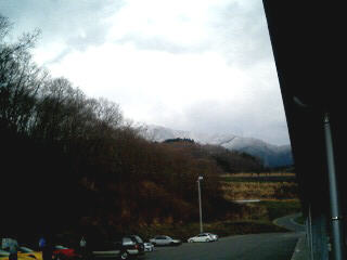 ふと見たら ひと山上は雪積もってますよ、雪。 どうりで寒いわけだ。 |