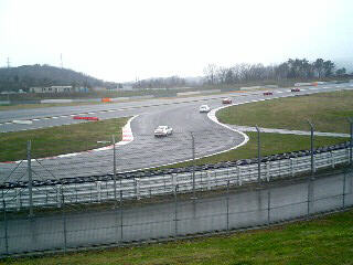 午後からは本コースでの 走行会もありました。 が、午前中は良かった天気も 雨、そして雪! 皆さんズルズルいいながら 大変そうでした(^^;)。 |
