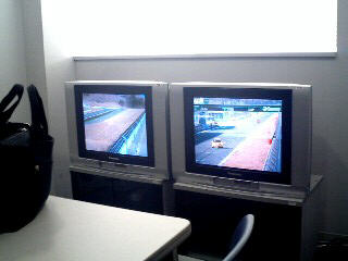 早起きした甲斐あってピットが使えました。 (とかいいながらワタシちょっと遅刻してしまいましたが・・・(^^;) 確保してくれたお二人に感謝<(_~_)>) ピット脇の小部屋は暖房ぽかぽか、 モニターもあってのんびり観戦OK。 |