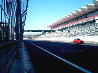 準備も万端、まずは 他クラスの走行を見ながらイメージトレーニング。 それにしても、相変わらずストレート長いですね。 |