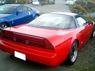 それにしても低い全高、 GT-Rのウィンドウラインくらいのところがルーフラインとは、 とことんベッタベタです。 もちろん、NSXよりさらに低い! よくこれで人が乗れるもんだ(^^;)。 |