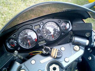 こちらもまた箱根オフ初参加のnaka-daiさんはバイクで登場。 スズキ隼は1年間だけ生産されたというレアカラーバージョン。 |