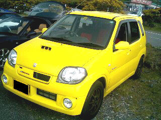 そうこうしているところへ登場は またまたお久しぶりの東海ご隠居様。 これまた希少なイエローが眩しいスズキKeiワークス。 ホント、こういうMTで遊べるちっちゃいクルマって なくなっちゃいましたよねぇ。 |
