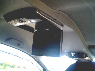 その室内には 愛娘まりんちゃん用にリア席モニターを設置。 天井吊り下げタイプ、綺麗に収まってます。 |