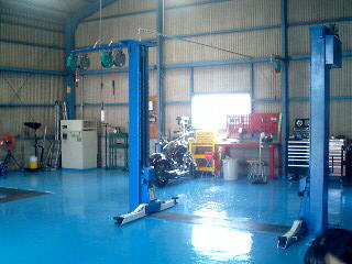中にはリフトが2基、 これで重整備もどんとこい! |