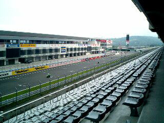 お昼休み、メインスタンドで 2輪の走りをぼんやり眺めながらリフレッシュ。 2本目こそはやるぜ! |