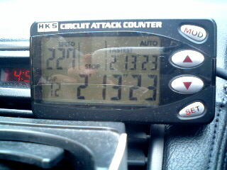 そんなこんなの1本目はこんなタイム。 ヤバイ、10秒ギリどころかベストラップも程遠い・・・。 最高速228キロですから、真っ直ぐだけは ちゃんと踏めてることが分かりますね(^^;)。 |