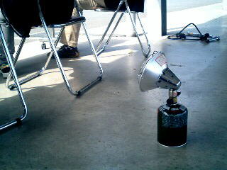 しかし寒い! というわけで受付後ろにはヒーター完備、 なんだかレーダーみたい(^^;)。 |