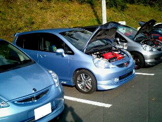 そして「フィット」軍団! センタータンクレイアウトって、 意外と重心が低くなってイイのかも? |