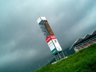 3時過ぎ、 「毎年このくらいの時間になると 何かが起こるんですよねぇ」 という実況の下、雨が・・・・。 フルウェット怖いし、僕らはこの辺で退散しましょう。 |