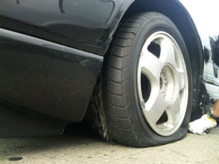 気合、入りすぎて リアタイヤバースト! ここまで使い切ればタイヤも満足? |