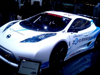 | こんなレーシングカーもありました、 日産リーフ「ニスモRC」。 将来はレーシングカーもみんな電気で走るのかなぁ。 音がなくて寂しそうだな・・。 |
