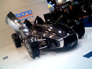 | こちらはガソリンエンジン車、 古典的なスポーツ「KO7 ロードスター」。 フェラーリ「エンツォ」をデザインした日本人、 ケンオクヤマプロデュースの エリーゼベースライトウェイトスポーツ。 |