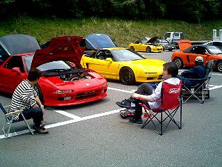 | さて、午後は KSPドリ錬の見学にちょっと行ってきました。 ちょうど同じ日に、同じ富士のこちらは ジムカーナ場でやってたんですね〜 こっちはホントにNSXばっかり!15台以上いたかな。 こちらの皆さんも丸一日おつかれさまでした。 |