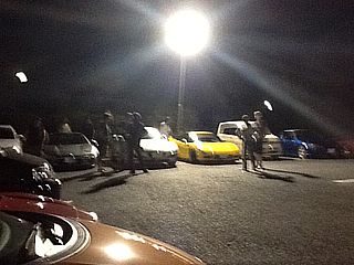さてさて、そんなわけで いつもの駐車場に集合です。 仕事帰りの組長は遅刻、すみません・・ |