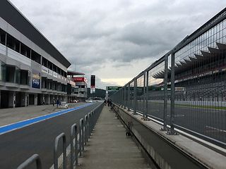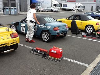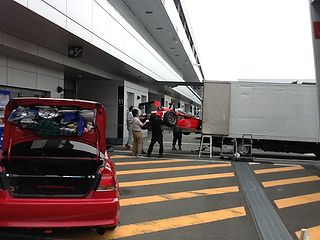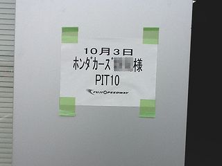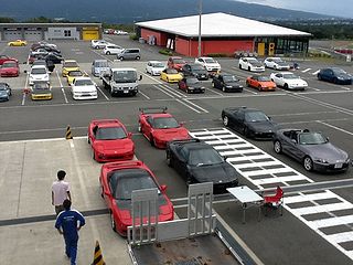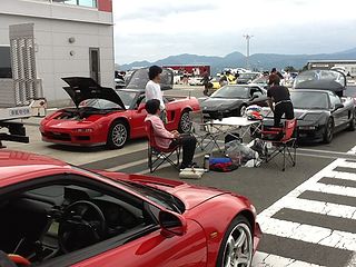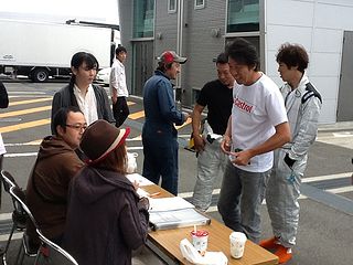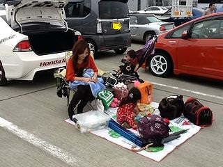 | 今回はなんと レーシングコースでの開催! 受付ももちろんピットで。 |