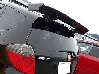 | こちらのフィットにはGTばりの リアウィング、かっこいいぜ! |
