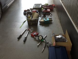 | 万が一のことがあっても すぐ対応できるよう、 S本工場長自前の工具一式で待機。 |