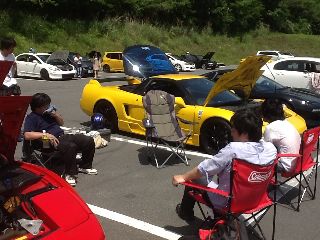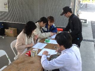 | と、冗談はさておき 受付を始めましょう。 今回も車種&経験などベースに 4クラスに分かれての走行でした。 ちなみに、4クラスの内訳は |