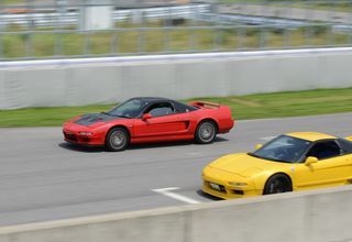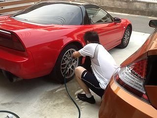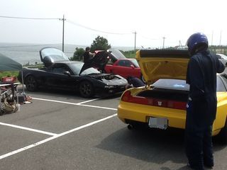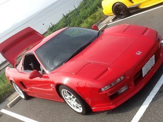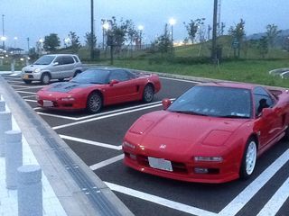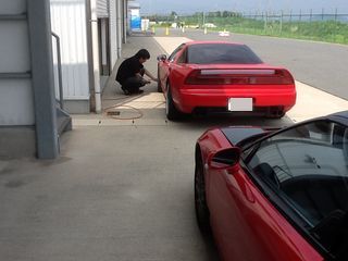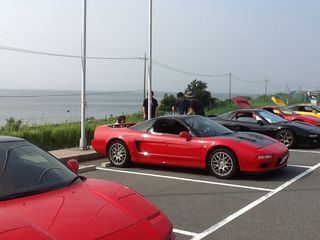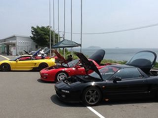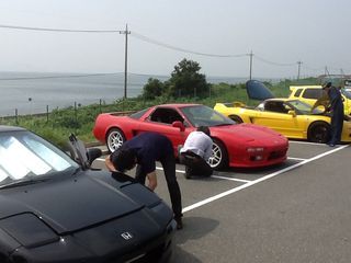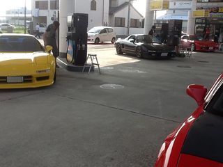 | 途中のスタンドで これからの走行に備えて給油。 スタンド内全車NSX、 路往くみなさんの視線が・・・(^^;)。 |