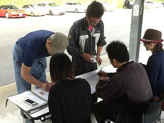 | 走行前の準備にいそしむS津さんと そのインパネに興味津々のkayさんたち。 きれいにインストールされたナビの 具合はこちらでチェックどうぞ。 |