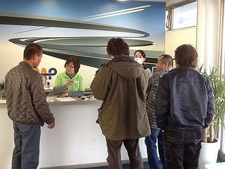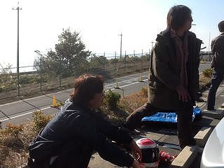 | 程なく地元の皆さんも到着。 さっそくみんなで走行受付。 |