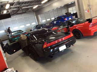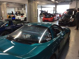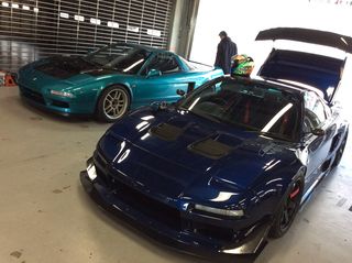 | ピットにはNSXがいっぱい。 参加30台中、 なんと11台(12台?)がNSX! こりゃ壮観だね。 |