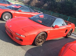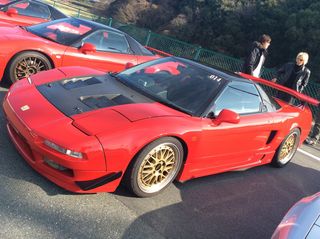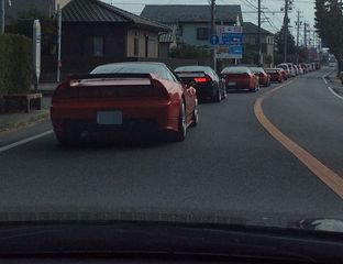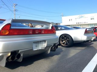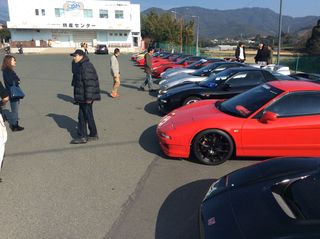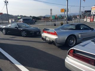 | 集合場所に無事到着、 続々と集まるNSX達。 みなさん、「お〜来た来た」って すぐ分かる良いサウンド(^^)。 |