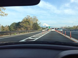 | 好天に恵まれて、いざ出発。 今日も富士山がきれいです。 |