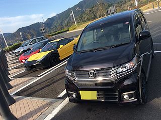 | いきなりNSXで というのはさすがにキツイか? ということで、今回は 通勤快速N-WGNで参加のさとるさん。 新調したAWが渋い! |