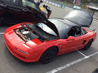 | そして当然、花開くNSX談義(^^)。 道中id号のコンプレッサーがパンクするも こちらで即効診断、大事なくて良かったですね。 |