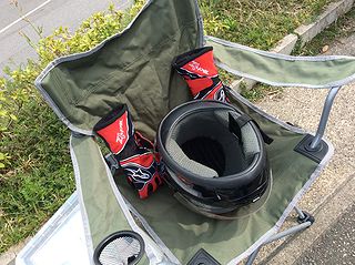 | 汗いっぱいの myヘルメット&グローブも おつかれさまでした。 |