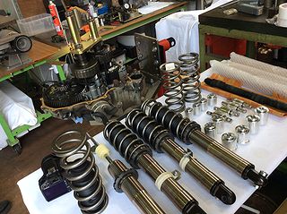 | 調整も最終段階に入ったという 新作サスペンションの展示が。 「ストリートでは乗り心地良く、且つ ラジアルで筑波を走るくらいなら結構楽しめる」 こんな方向性だそうです。 気になるヒト、多いのでは?? |