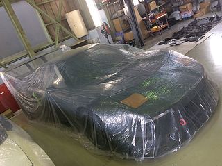 | そんな工場の片隅には 製作中のすんごいNSXも。 チューニングカーというより、もはや レーシングカーの領域に入るスーパーNSX、 ぜひカバーを外して見たかった! |