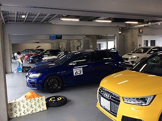2本目がスタートする前に プロドライバーによる特別講習を。 講師は青木孝行さん、 雨の富士の注意点など 事細かに教えてもらえました。 |