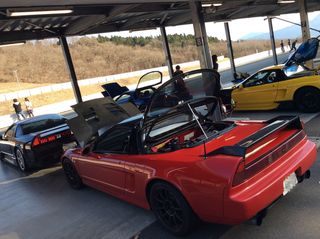 さて、今回参加のNSXは・・・ 今度こそここで新足回りの本領発揮? ベスト更新に意気込むワタクシ組長と |