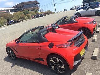 赤と白とそれぞれ2台ずつ、 めでたく紅白のS660が並びました♪ |